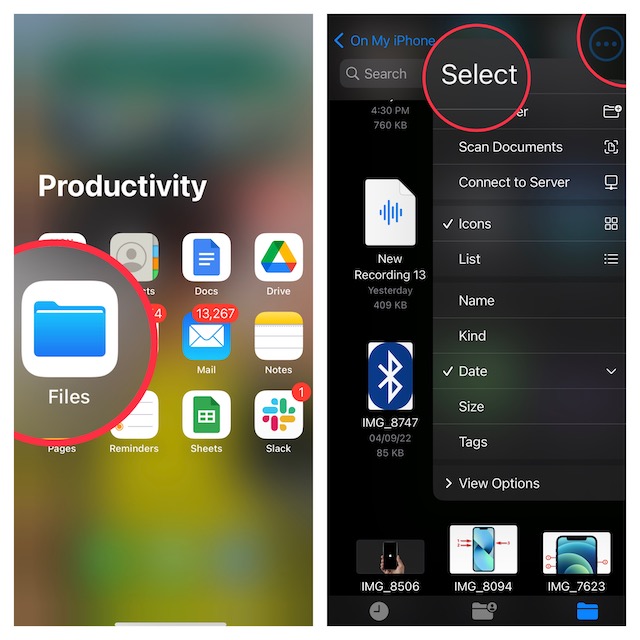 1.Uruchom aplikację Pliki na swoim iPhonie i otwórz folder, w którym przechowywane są obrazy.
