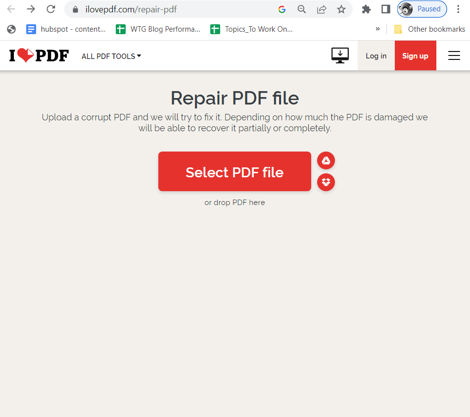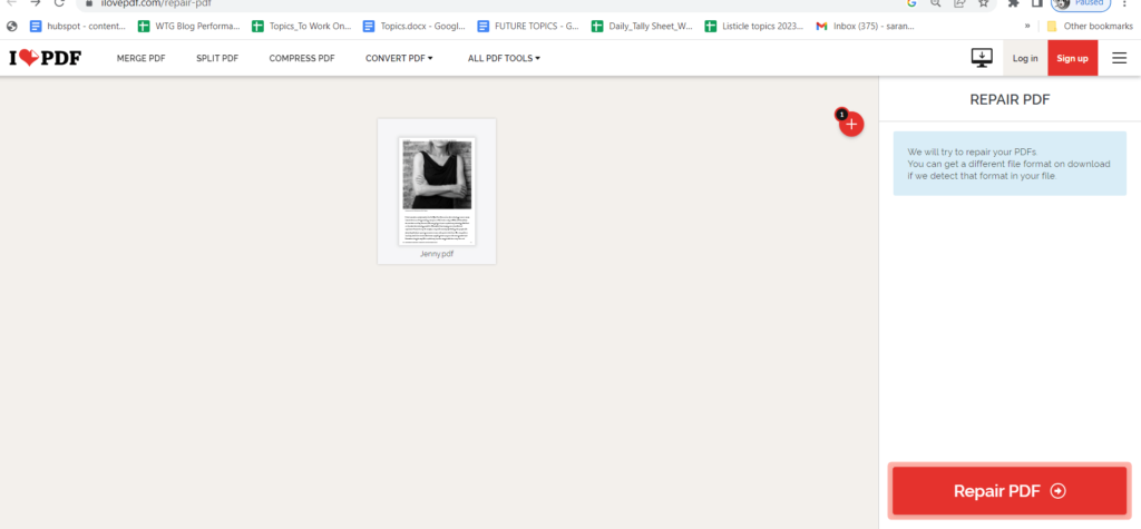Możesz także naprawić uszkodzone pliki PDF online, gdziekolwiek jesteś. Na przykład iLovePDF to jedna z najlepszych platform do naprawy plików PDF. Oto jak możesz to zrobić –