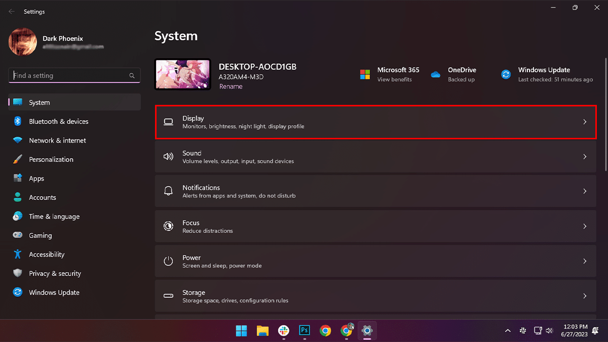 - KliknijSystem>Wyświetlacz.