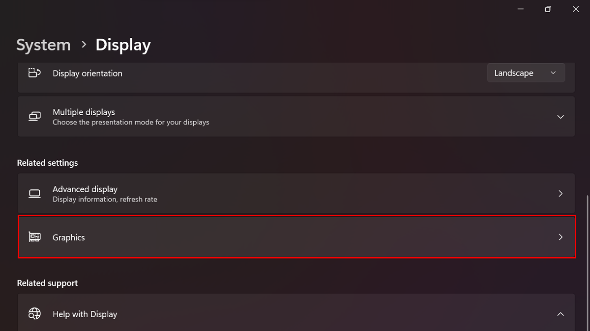- Przewiń w dół doPowiązane ustawieniasekcję i kliknijGrafika.
