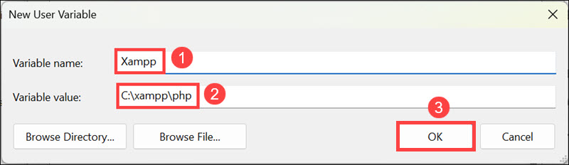 7.Następnie kliknijOKaby utworzyć nową zmienną środowiskową.