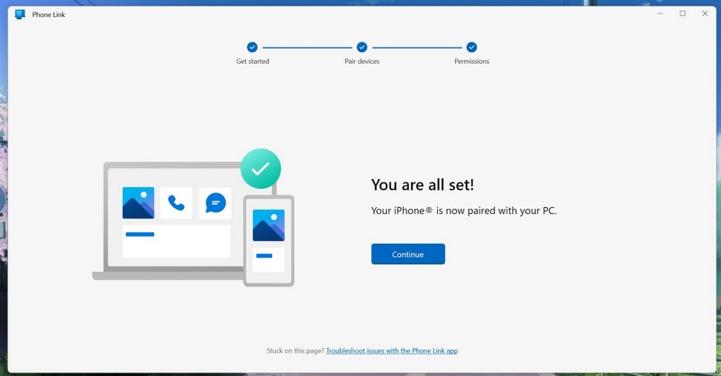 Jeśli chcesz ponownie podłączyć iPhone'a lub podłączyć nowe urządzenie z systemem iOS w aplikacji Phone Link na urządzeniu z systemem Windows 11, musisz zacząć od zera i wykonać czynności wymagane do skonfigurowania aplikacji na telefonie iPhone.
