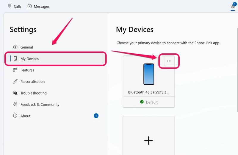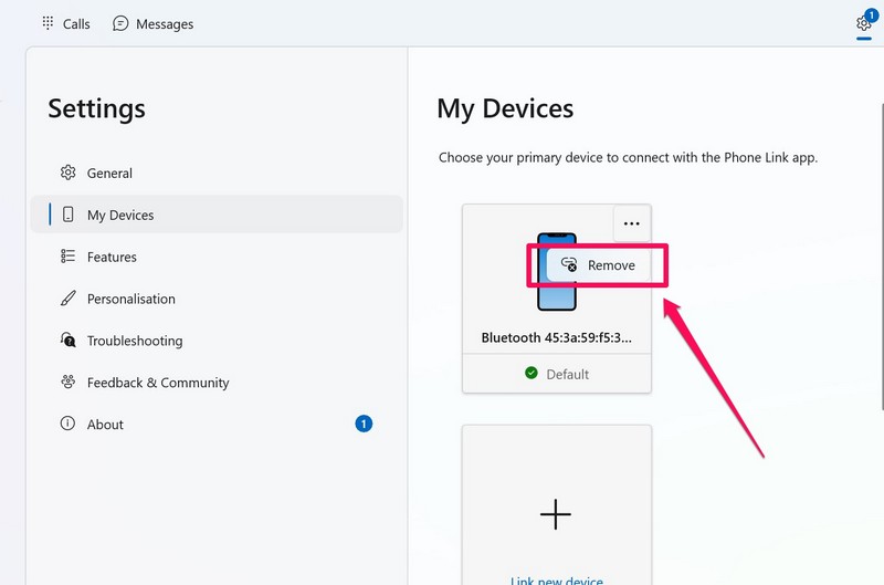 Teraz, jeśli chcesz usunąć urządzenie iOS z aplikacji Phone Link w systemie Windows 11, możesz to łatwo zrobić z poziomu samej aplikacji. Po prostu wykonaj poniższe czynności, aby usunąć iPhone'a z aplikacji Phone Link na komputerze lub laptopie z systemem Windows 11: