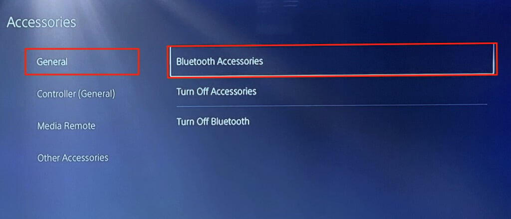 - Ewentualnie wróć do menu „Akcesoria”, wybierzOgólnyi wybierzAkcesoria Bluetooth.