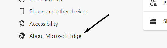 4.Następnie wybierzInformacje o Microsoft Edgeopcję z lewego paska bocznego, aby otworzyćO sekcjiaplikacji Microsoft Edge.