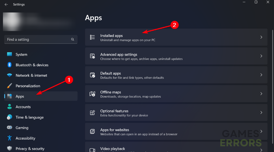 2.Następnie kliknijAplikacje i funkcjeaby uzyskać listę wszystkich aplikacji zainstalowanych na komputerze z systemem Windows 11/10.