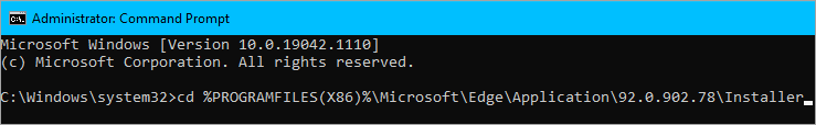 cd/cd %Program Files (x86)%MicrosoftEdgeApplication(EdgeVersion)InstallerNotatka:Musisz wymienićWersja Edgetekst zaktualna wersja aplikacji Microsoft Edge.Możesz sprawdzićKrok 4w celach informacyjnych.