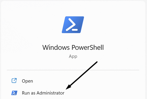 2.Teraz wybierzUruchom jako administratoraby uruchomić Windows PowerShell z uprawnieniami administracyjnymi.