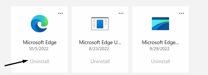 3.Po znalezieniu przeglądarki Microsoft Edge kliknij przyciskOdinstalujprzycisk pod aplikacją Microsoft Edge, aby odinstalować aplikację z systemu.