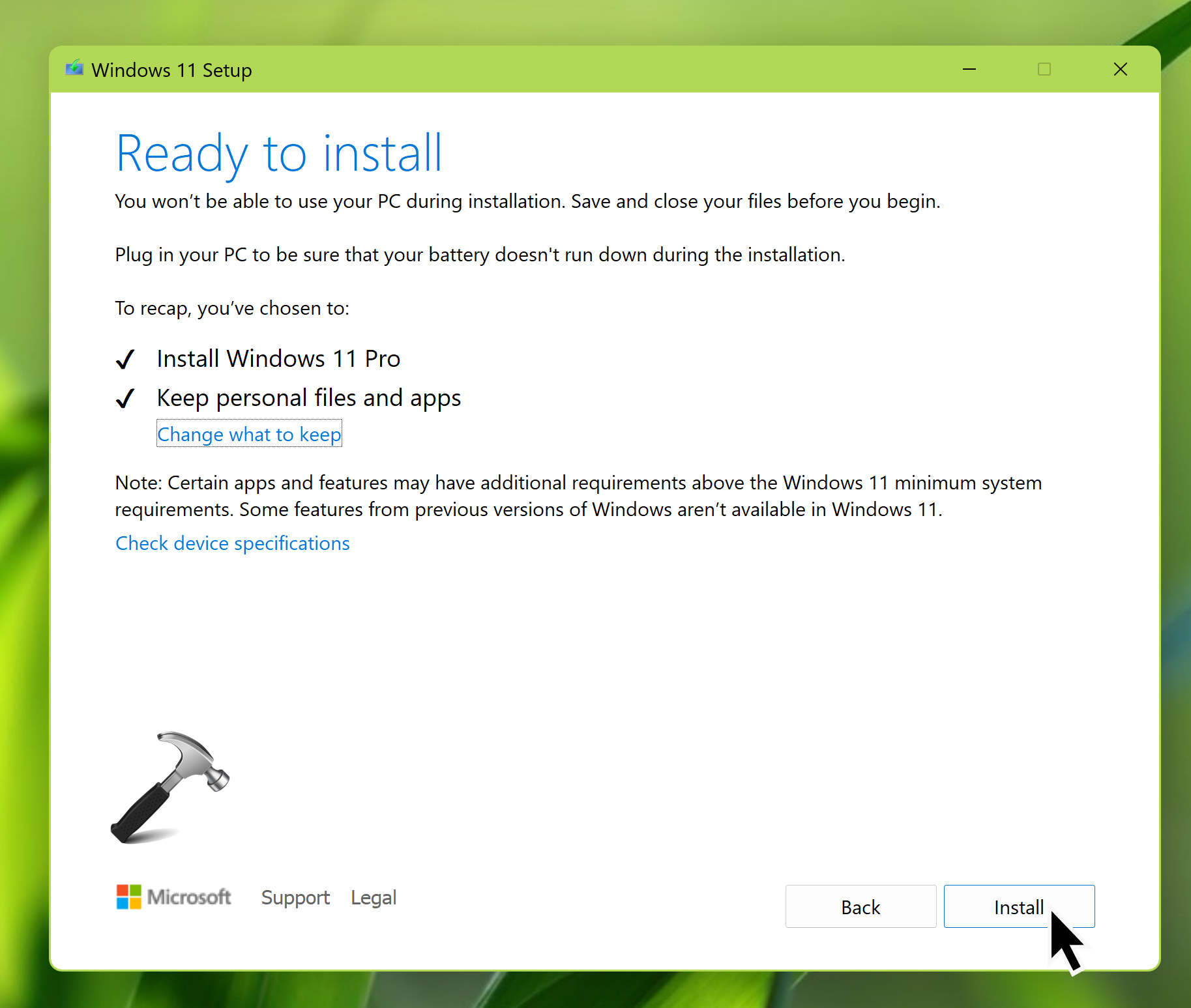 8. Na koniec pojawi się ekran gotowości do instalacji. Tutaj możesz kliknąć Zmień, co chcesz zachować.
