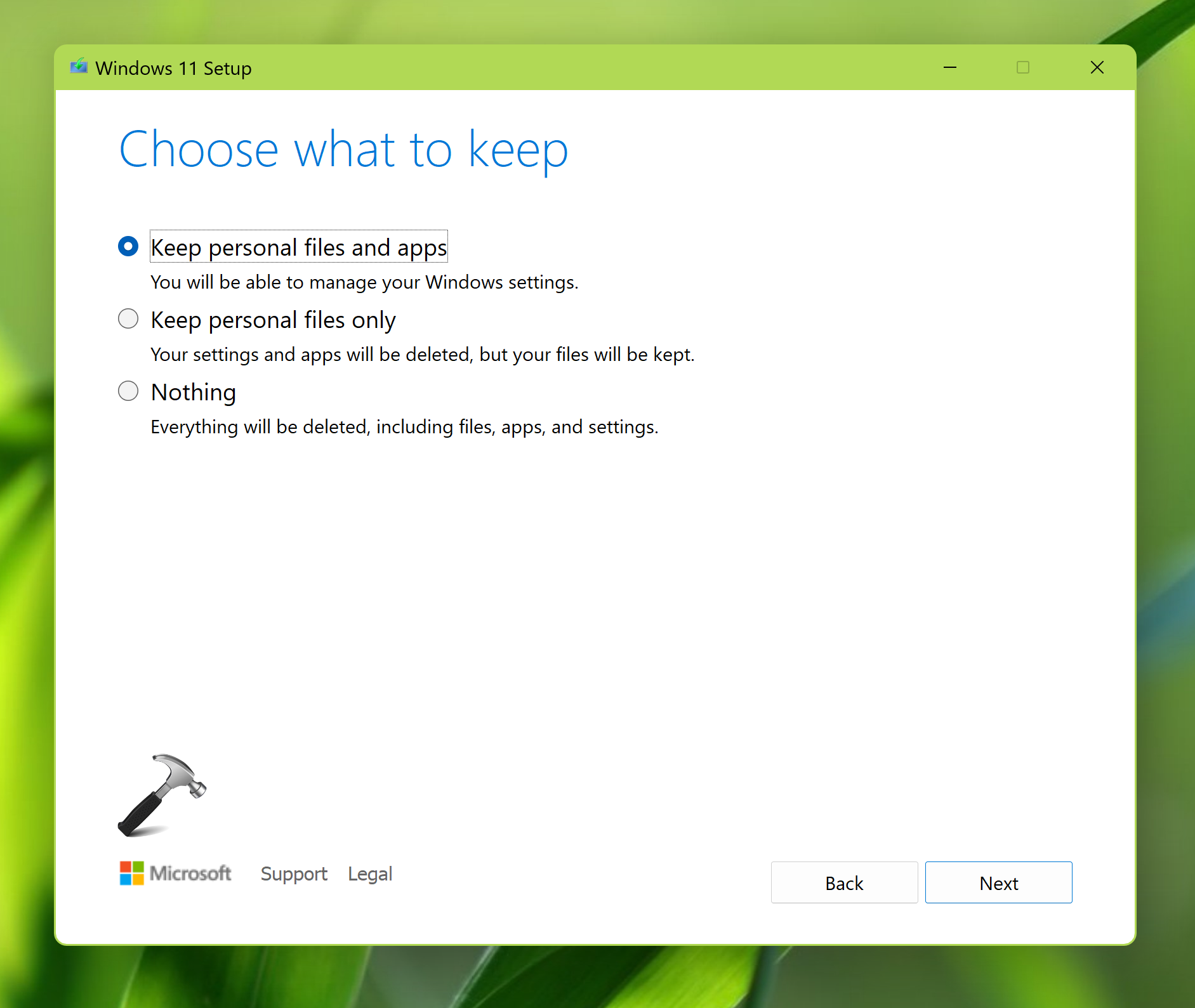 9. W obszarze Wybierz, co chcesz zachować, możesz wybrać odpowiednią opcję. Teraz, kiedy klikniesz przycisk Dalej, ponownie zostaniesz przeniesiony do ekranu gotowości do instalacji pokazanego w kroku 8. Gdy tylko naciśniesz przycisk Instaluj, zostaniesz przeniesiony do następnego kroku.