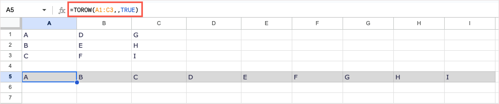 =TOROW(A1:C3)