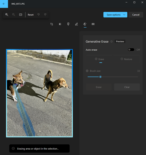 Według Microsoftu w porównaniu z poprzednią funkcją Naprawa punktowa w aplikacji Microsoft Photos, funkcja wymazywania generatywnego „tworzy bardziej płynny i realistyczny efekt po usunięciu obiektów ze zdjęcia, nawet podczas wymazywania dużych obszarów”.