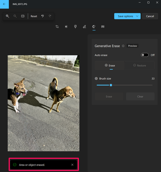 Teraz Microsoft w końcu dodał tę funkcję do swojej aplikacji Zdjęcia w systemie Windows i nazywa ją wymazywaniem generatywnym. Zasadniczo jest to rozszerzenie istniejącej funkcji Spot fix w aplikacji Zdjęcia i umożliwia użytkownikom usuwanie niechcianych obiektów ze zdjęć. Luki utworzone przez usunięte obiekty są automatycznie wypełniane wynikami wygenerowanymi przez sztuczną inteligencję, aby zdjęcia wyglądały realistycznie.