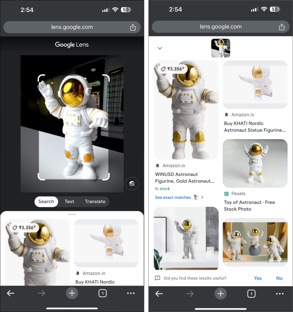 Jeśli wahasz się między aplikacją Google a aplikacją Zdjęcia Google, pamiętaj o tymZdjęcia Google nie umożliwiają wyszukiwania w czasie rzeczywistym. Jeśli więc interesuje Cię wyszukiwanie za pomocą Obiektywu, najlepiej sięgnąć po aplikację przeglądarki Google.