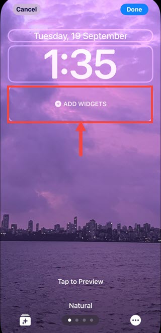 4.Stuknij w+DODAJ WIDŻETYopcję na ekranie blokady.