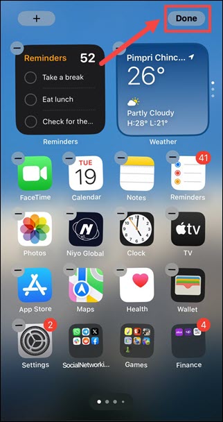 8.Teraz dostosuj położenie widżetu na ekranie i dotknijZrobioneopcję w prawym górnym rogu.