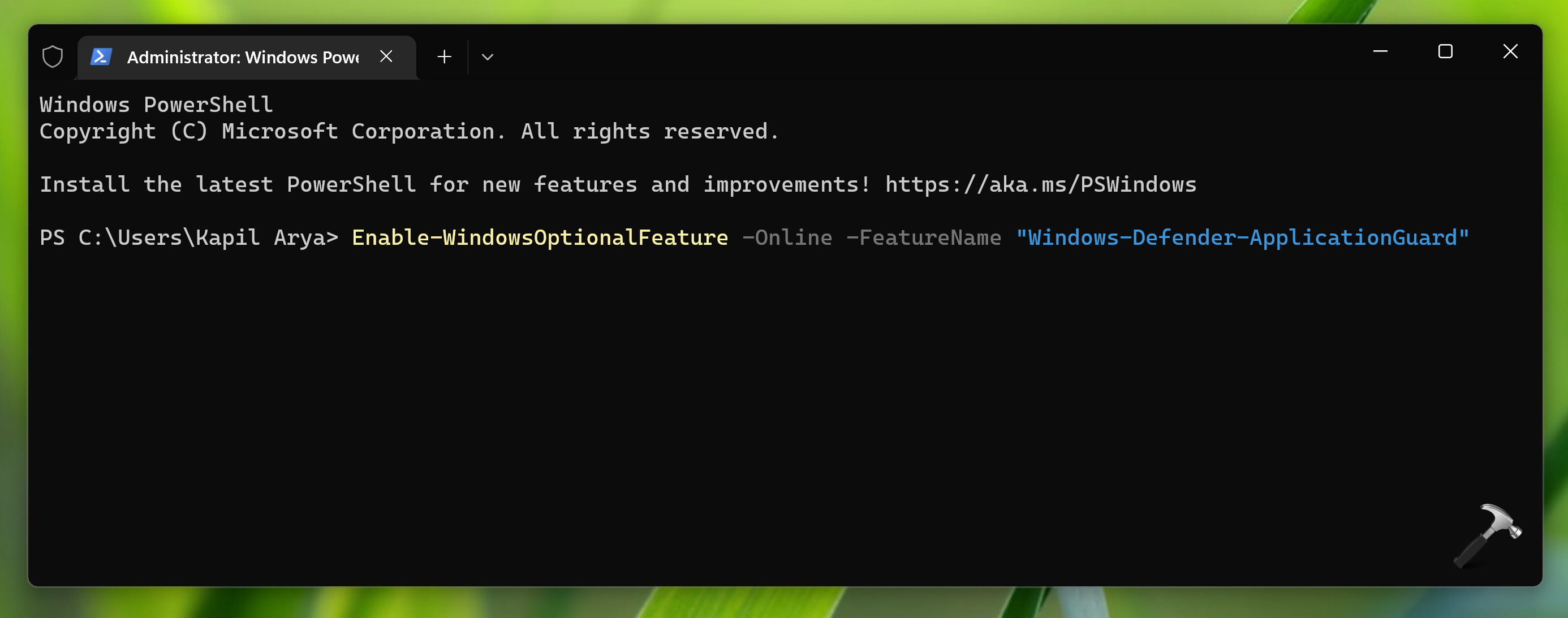 Enable-WindowsOptionalFeature -Online -FeatureName "Windows-Defender-ApplicationGuard"