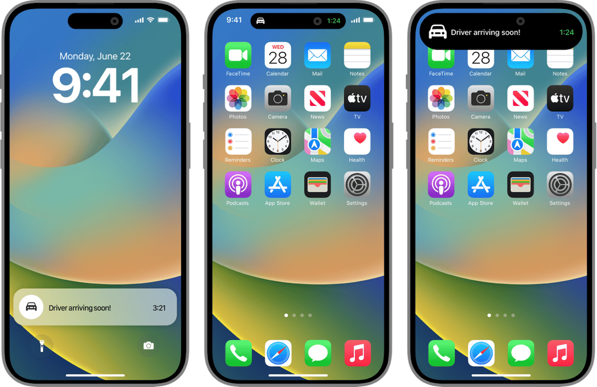 Chociaż interfejs Live Activity API został wprowadzony w iOS 16 beta 4, firma opóźniła tę funkcję, ponieważ nie obsługiwała ona Dynamic Island. Po zaprezentowaniu nowego iPhone'a 14 Pro Dynamic Island podczas wydarzenia 7 września firma Apple udostępniła zaktualizowaną platformę ActivityKit dla Lock Screen i Dynamic Island.