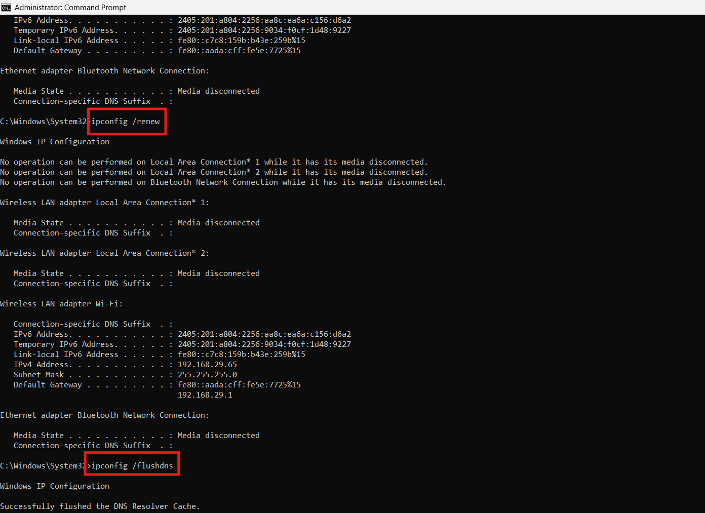2. Biegnijipconfig /releaseNastępnieipconfig /renewpo tym.