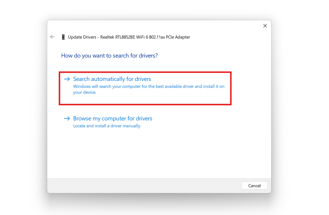 3. Następnie wybierz opcję Wyszukaj automatycznie.