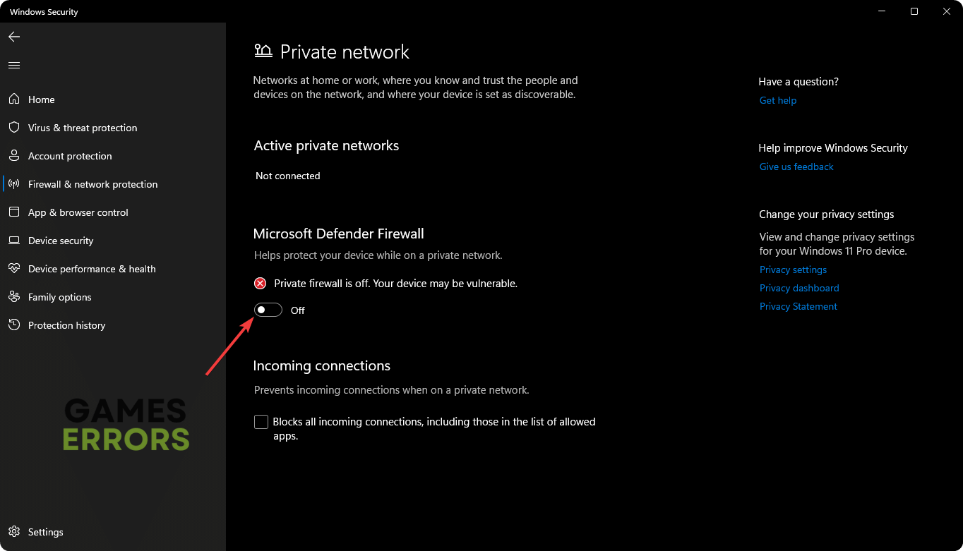- PodZapora sieciowa Microsoft Defendersekcji, wyłącz przełącznik.