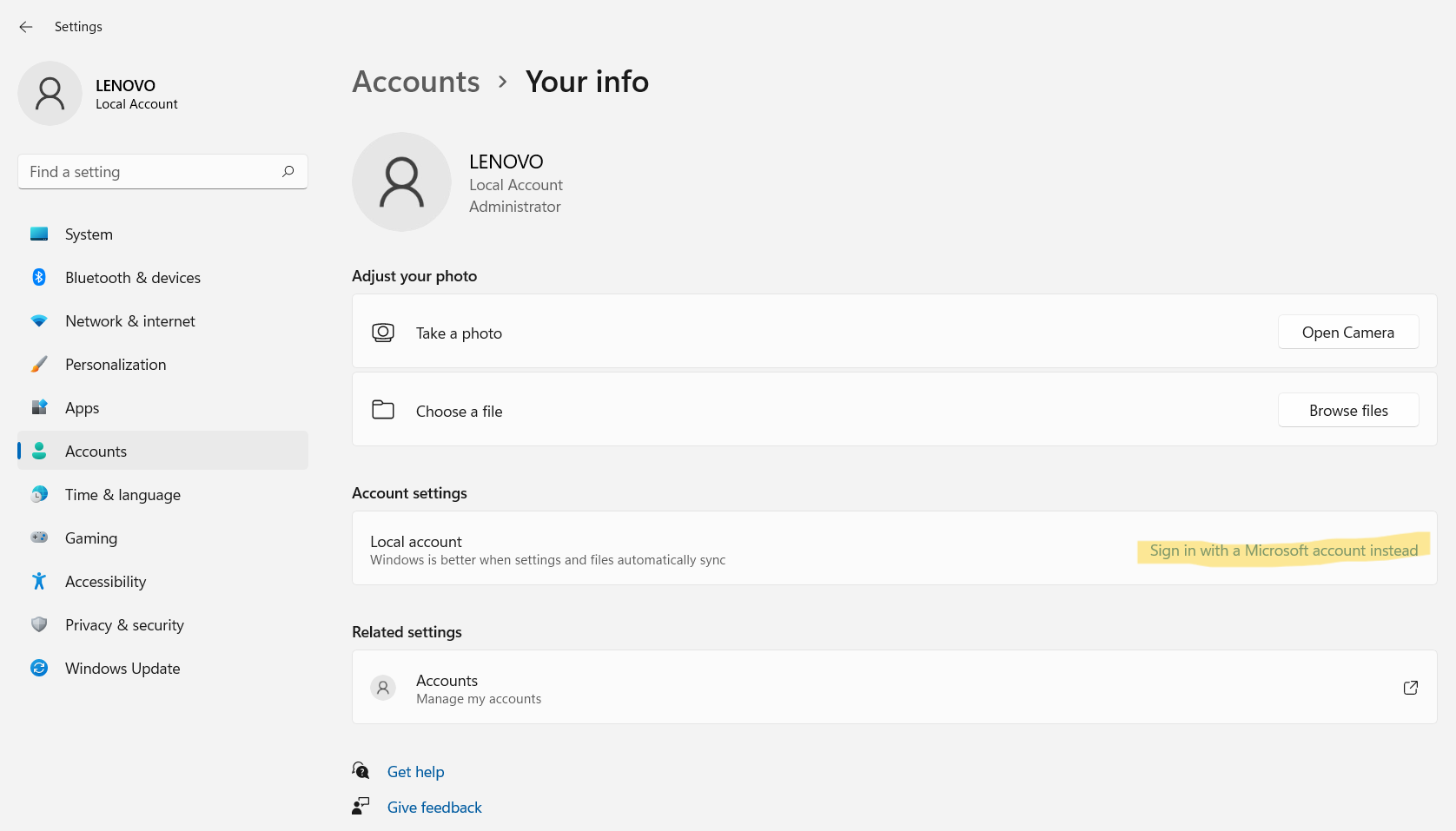 Jeśli Twój system Windows 11 jest już aktywowany, możesz to po prostu zrobićprzełącz się na konto Microsoft z konta lokalnegoa Twoja licencja zostanie połączona z Twoim kontem Microsoft.