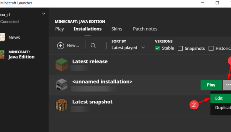 1. Za pośrednictwem Minecraft Launcher