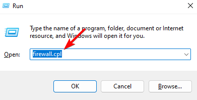 - Teraz wpiszFirewall.cplw polu wyszukiwania i naciśnij Enter, aby otworzyćFirewall obrońcy systemu Windows.
