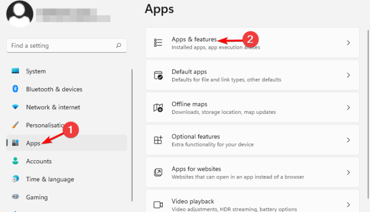 - Następny. KliknijAplikacjepo lewej, a następnie kliknijAplikacje i funkcjepo prawej.