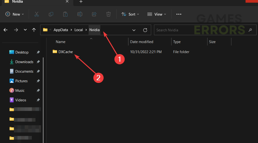 - Znajdź folder NVIDIA, otwórz go, a następnie otwórz plikPamięć podręczna DXfolder i usuń wszystkie znajdujące się w nim elementy.