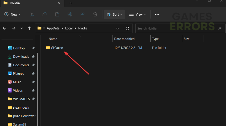 - OtwórzNV_Cachefolderze i usuń wszystkie pliki z tego folderu.