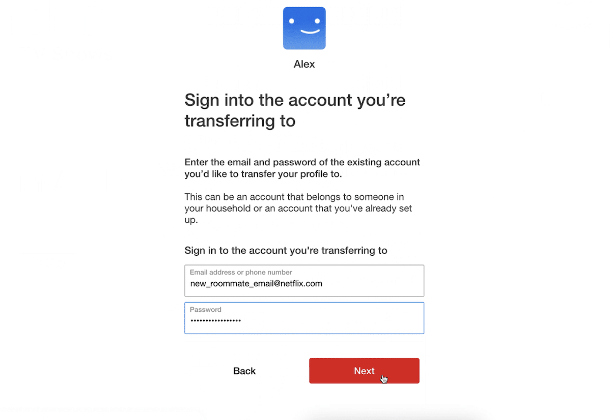 Poniżej opisano, jak skorzystać z funkcji przenoszenia profilu Netflix w celu przeniesienia profilu na istniejące konto