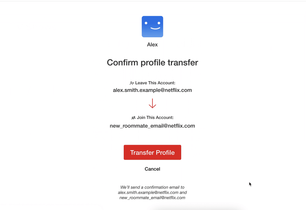 Nadawca wideo uruchomił także funkcję przenoszenia profilu Netflix, dzięki której osoby współdzielące konto mogą z łatwością utworzyć własne konto i przenieść na nowe konto ustawienia serwisu Netflix, takie jak historia przeglądania, spersonalizowane rekomendacje, zapisane treści/gry i inne.