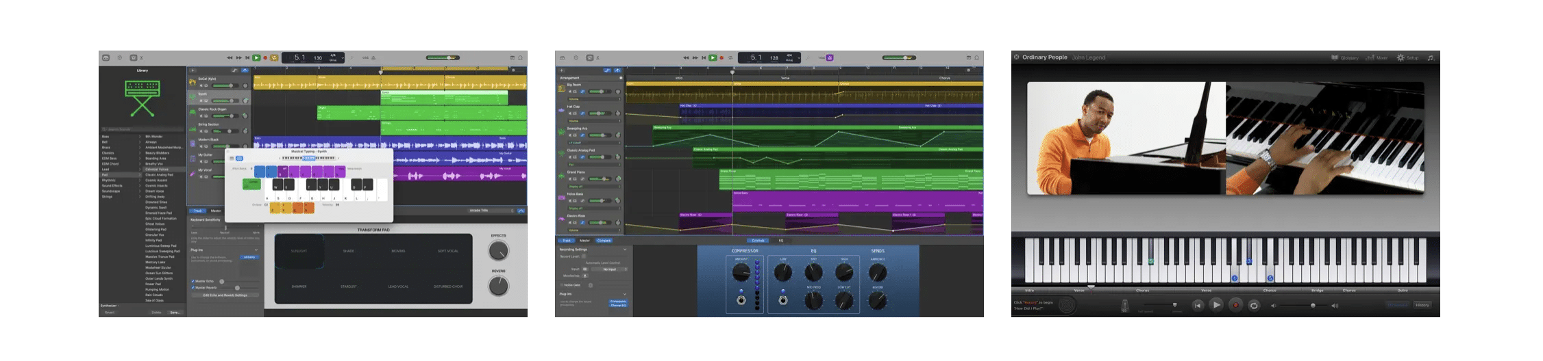 Dostępna na wszystkich urządzeniach Apple GarageBand to natywna aplikacja Apple do edycji dźwięku, która oferuje wirtualne instrumenty muzyczne, takie jak perkusja i gitara, oraz inteligentne sterowanie umożliwiające tworzenie nowych utworów lub remiksowanie istniejących. Użytkownicy mają także dostęp do Biblioteki dźwięków, w której mogą czerpać inspiracje do nowych projektów od największych współczesnych producentów i wiele więcej do „nagrywania, miksowania, masterowania i udostępniania”.