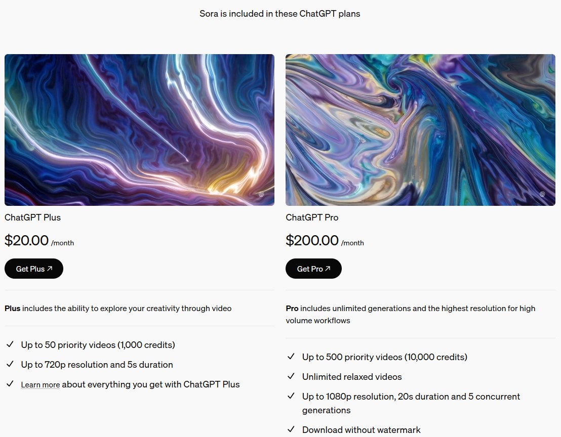 OpenAI ogłosiło subskrypcję ChatGPT Pro, która kosztuje 200 dolarów miesięcznie i choć cena wydawała się szalona, teraz ma to sens. Z drugiej strony ChatGPT Plus kosztuje tylko 20 USD miesięcznie. Użytkownicy ChatGPT Plus otrzymują 1000 kredytów na Sora, która oferuje do 50 filmów priorytetowych, ale nie pozwala na dostęp do filmów zrelaksowanych. Użytkownicy ChatGPT Pro mają dostęp do 500 filmów priorytetowych (10 000 kredytów) i nieograniczonej liczby filmów zrelaksowanych. Użytkownicy profesjonalni mogą pobierać filmy bez znaków wodnych.