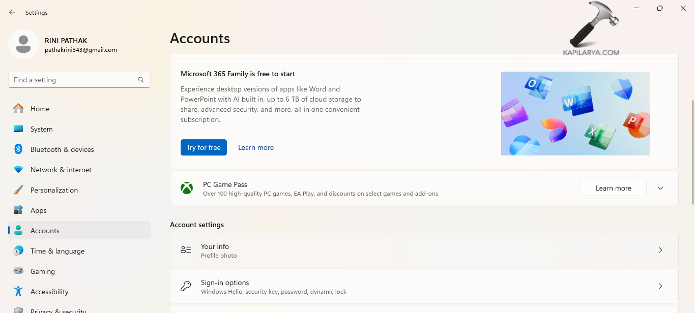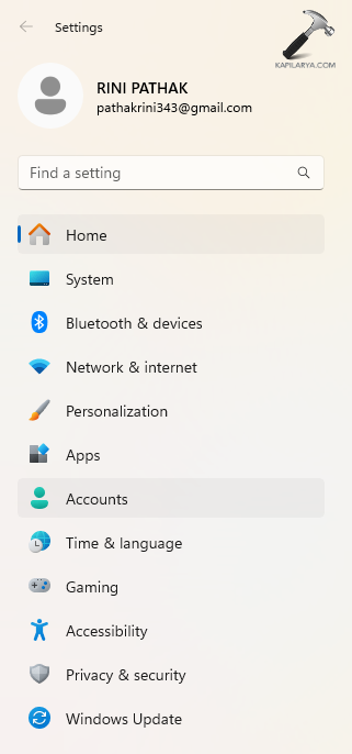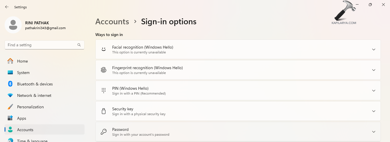 Krok 1-Najpierw przejdź do Ustawienia> Konta> Opcje logowania.