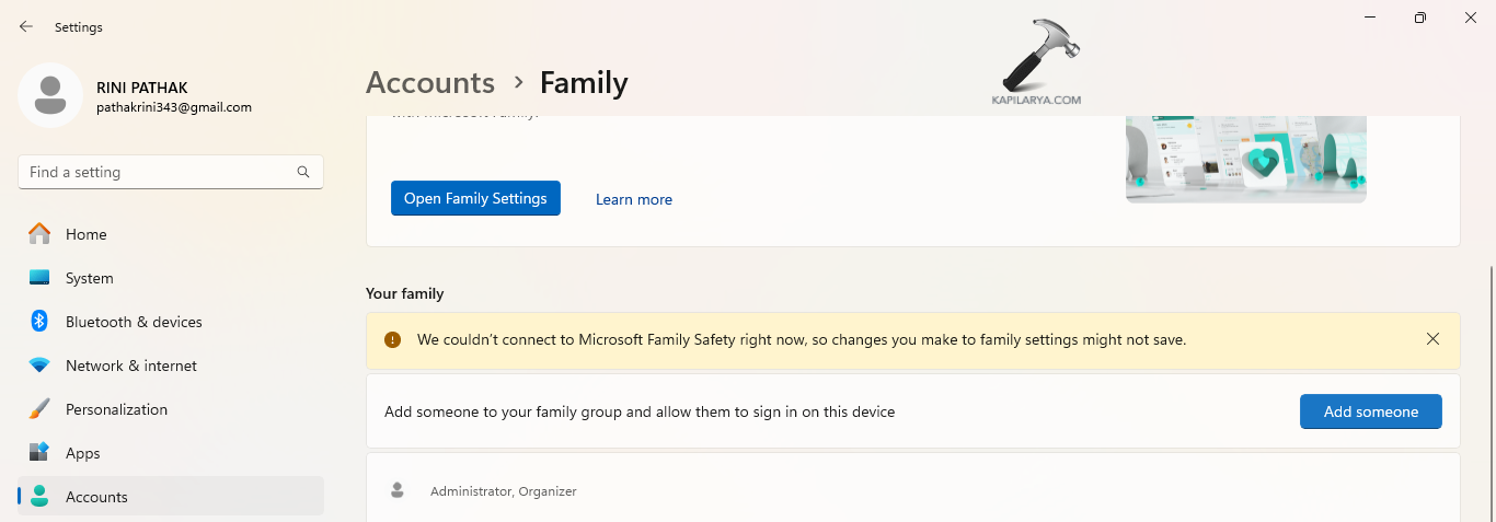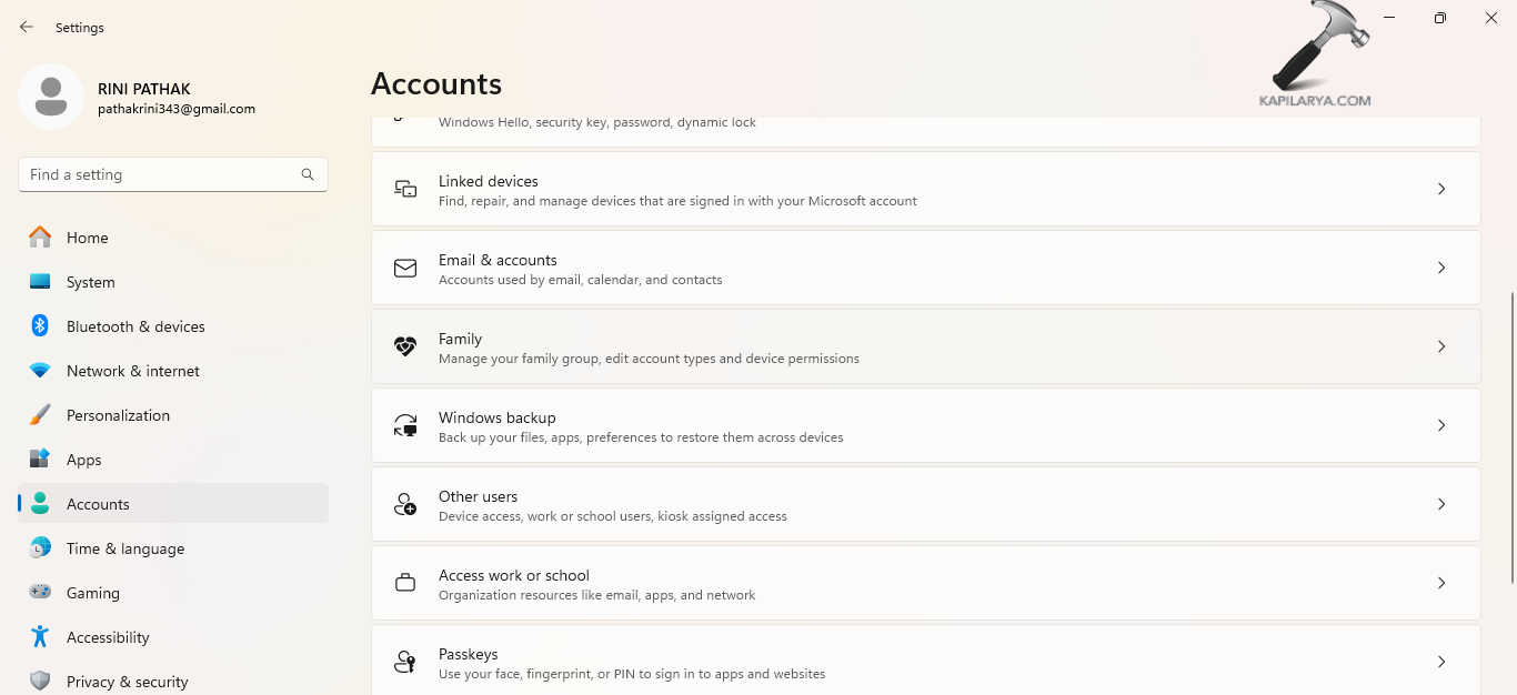Krok 2-Następnie przejdź do Ustawienia > Konta > Rodzina i inni użytkownicy.