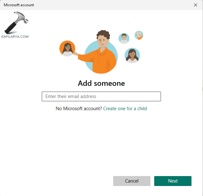 Krok 4-Następnie postępuj zgodnie z instrukcjami konfiguracji nowego konta użytkownika. Jeśli jednak nie ma danych konta Microsoft, wybierz opcję Nie mam danych logowania tej osoby > Dodaj użytkownika bez konta Microsoft.