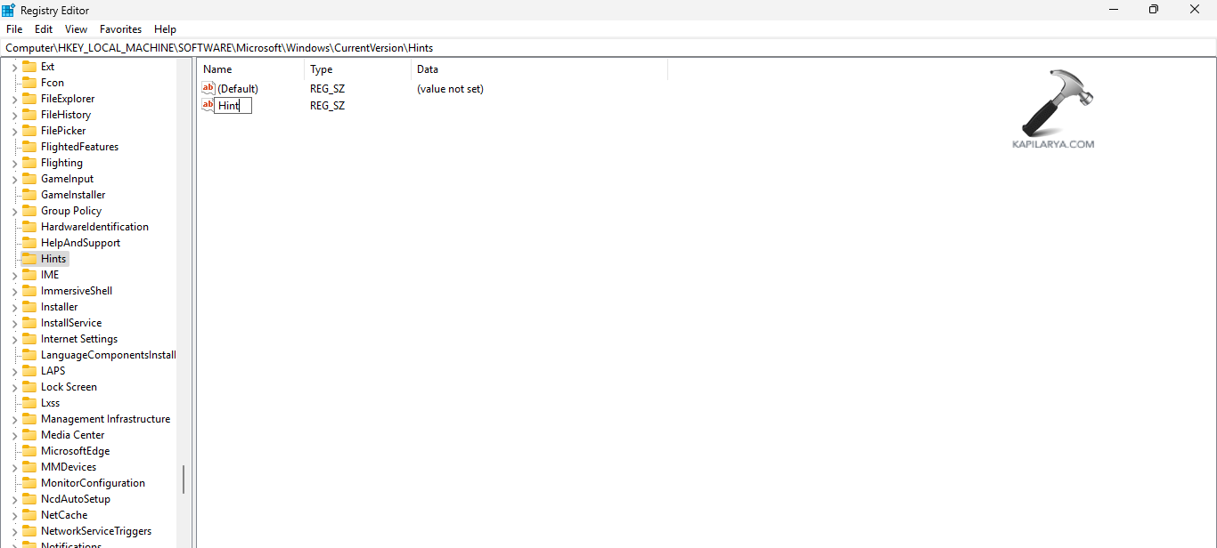 HKEY_LOCAL_MACHINESOFTWAREMicrosoftWindowsCurrentVersionHints