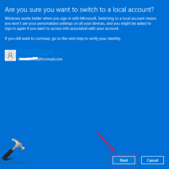 Zalogowanie się na konto lokalne może również rozwiązać wspomniany problem. Teraz wykonaj poniższe kroki, aby zrobić to samo.