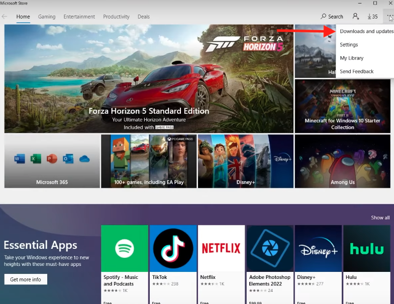 - Kliknij naElipsaobok zdjęcia profilowego i wybierz opcjęPliki do pobrania i aktualizacjeopcja.