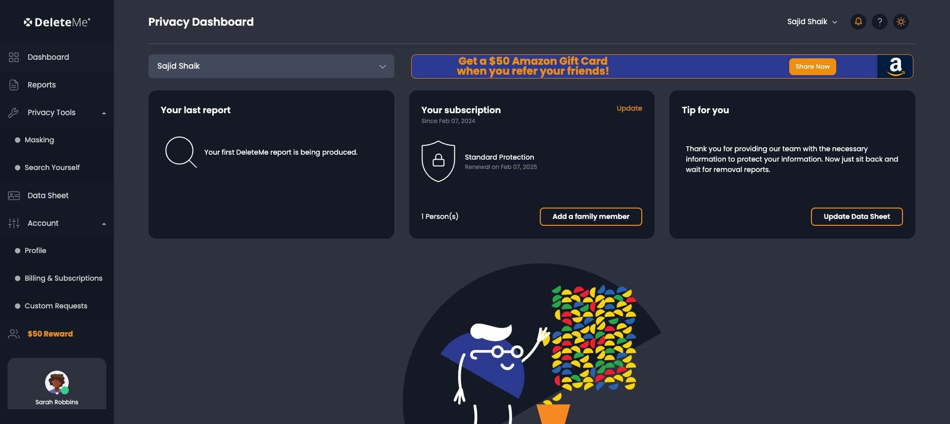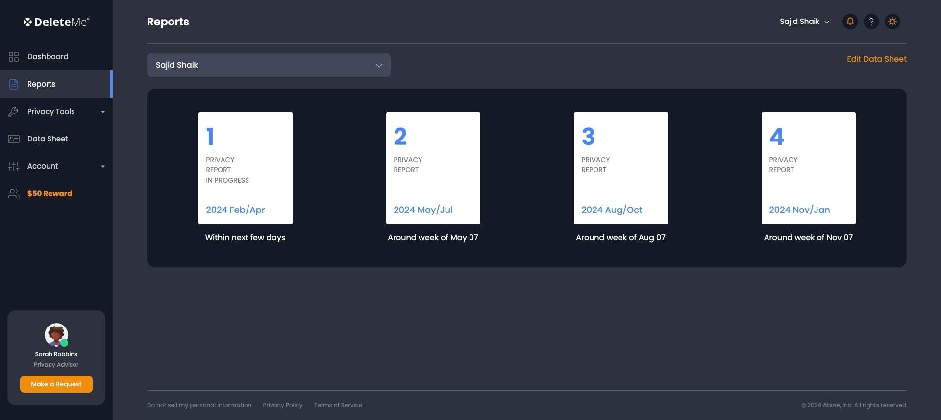 DeleteMe zapewnia także spersonalizowane raporty dotyczące prywatności, narzędzia, a nawet osobistego doradcę ds. prywatności, który pomoże Ci zrozumieć i poprawić Twoją prywatność w Internecie.