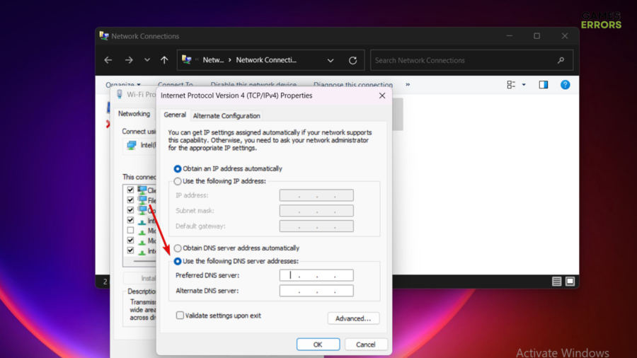 6. wPreferowany serwer DNSopcję, ustaw to: 8.8.8.8. Następnie wAlternatywny serwer DNSustaw co następuje: 8.8.4.4.