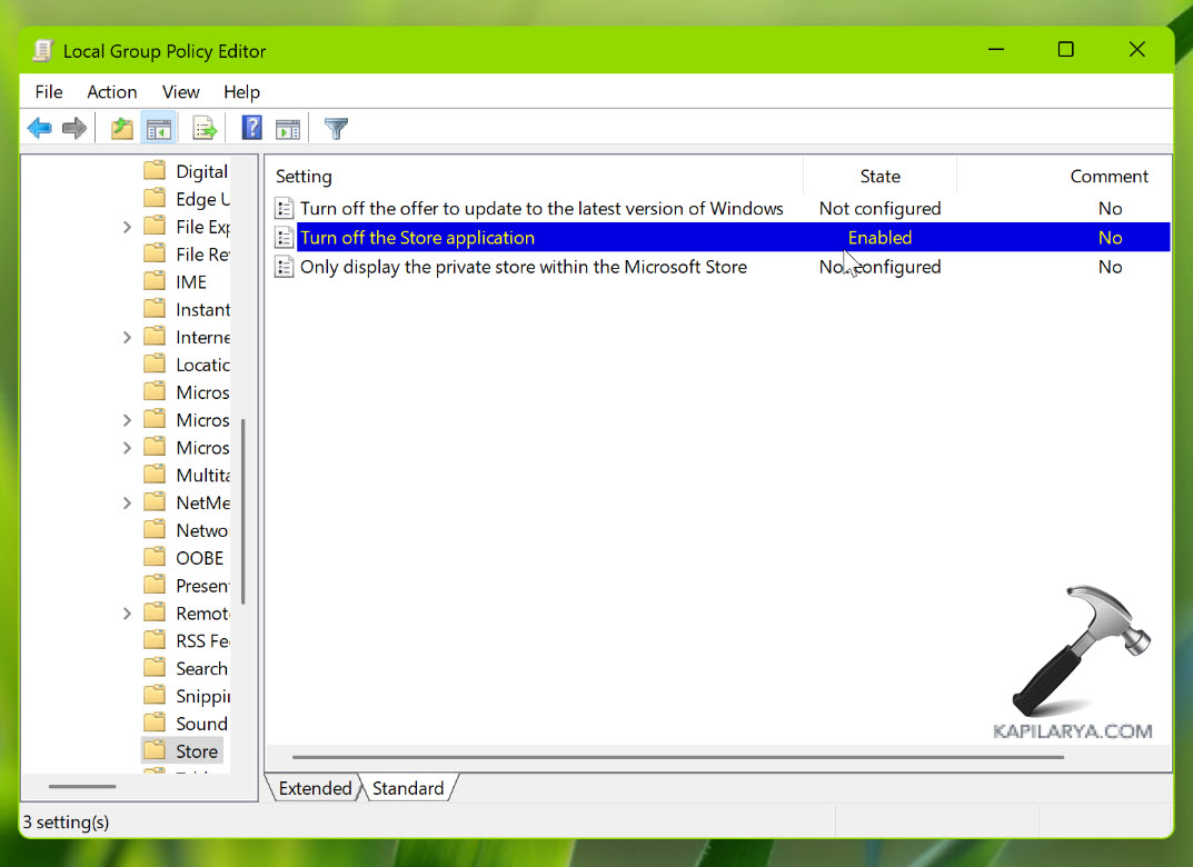 3. W sklepie Store sprawdź ustawienie zasad aplikacji Wyłącz sklep. Kliknij dwukrotnie to ustawienie zasad, aby je zmodyfikować.