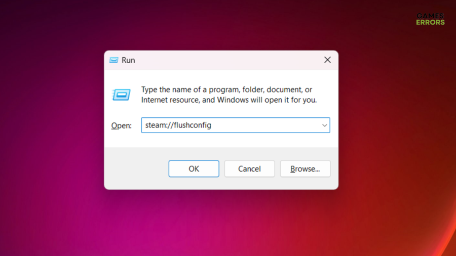 10. W nowym wyskakującym oknie wpisz:steam://flushconfig.
