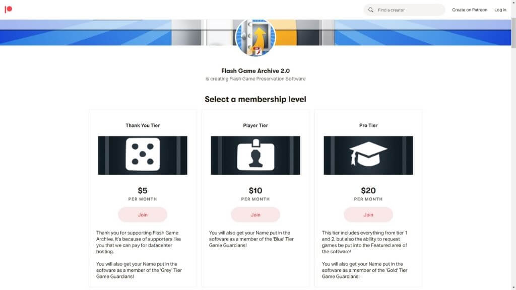 Istnieją trzy poziomy:Szary,Niebieski, IZłoto. Kosztują one 5, 10 i 20 dolarów miesięcznie. Nazwy wszystkich trzech poziomów zostaną umieszczone w oprogramowaniu, ale jeśli jesteś Złotym Patreonem, możesz poprosić o umieszczenie gier, które Cię interesują, w sekcji Polecane, dzięki czemu prawdopodobnie zagra w nie więcej osób.