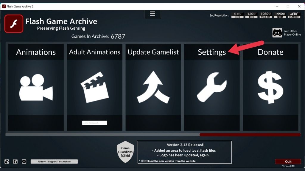 W archiwum gier Flash nie ma zbyt wielu ustawień, które można modyfikować, ale warto je podkreślić.