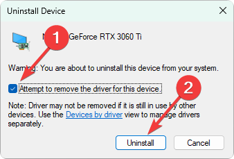 - KleszczSpróbuj usunąć sterownik dla tego urządzeniai kliknij Odinstaluj.