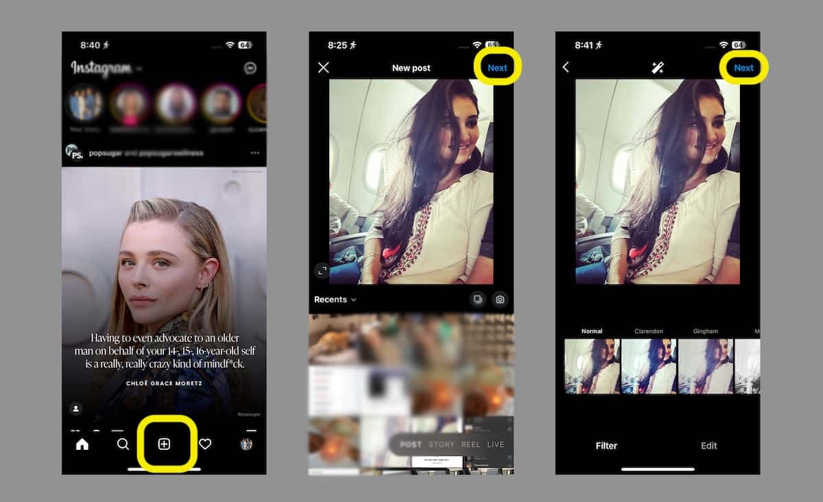 - Otwórz Instagram i dotknij przycisku „+” u dołu interfejsu użytkownika.